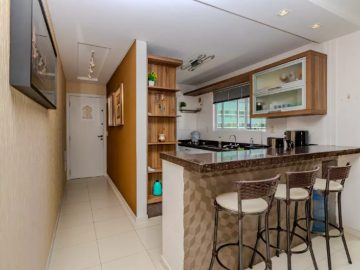 Possui living integrado com sala de estar e jantar, cozinha equipada, 3 dormitórios sendo 1 suíte, banheiro social e área de serviço.