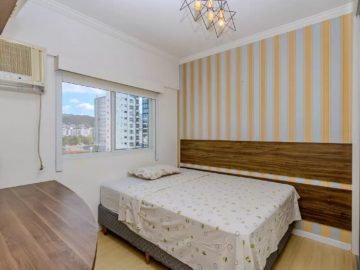 Apartamento mobiliado com sacada e churrasqueira a carvão, perfeito para receber amigos e família.