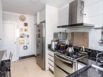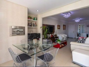 Conta com 3 dormitórios, sendo 1 suíte, amplo living para dois ambientes, sacada com churrasqueira a carvão, cozinha equipada, área de serviço e 2 vagas de garagem.